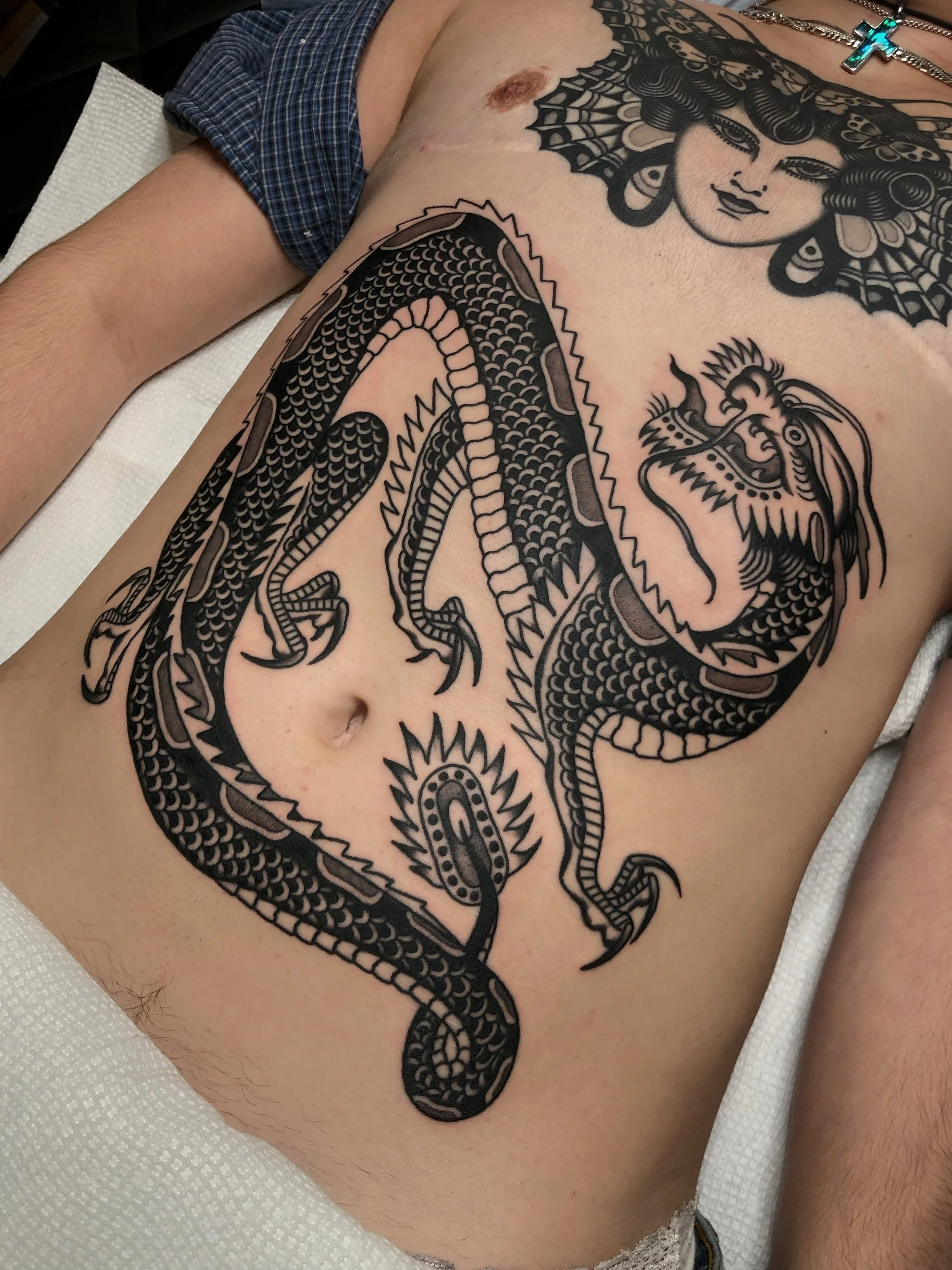 I was raised in New Zealand but apprenticed in Australia. During my career I’ve bounced back and forth between the two. Back then, I was actually tattooing a different style (you can still view on @hcneotrad). In fact, that’s probably what I was most known for. About 7 years into my career I was gravitating more and more towards that nice classic foundation but I still try to put my own spin on it.